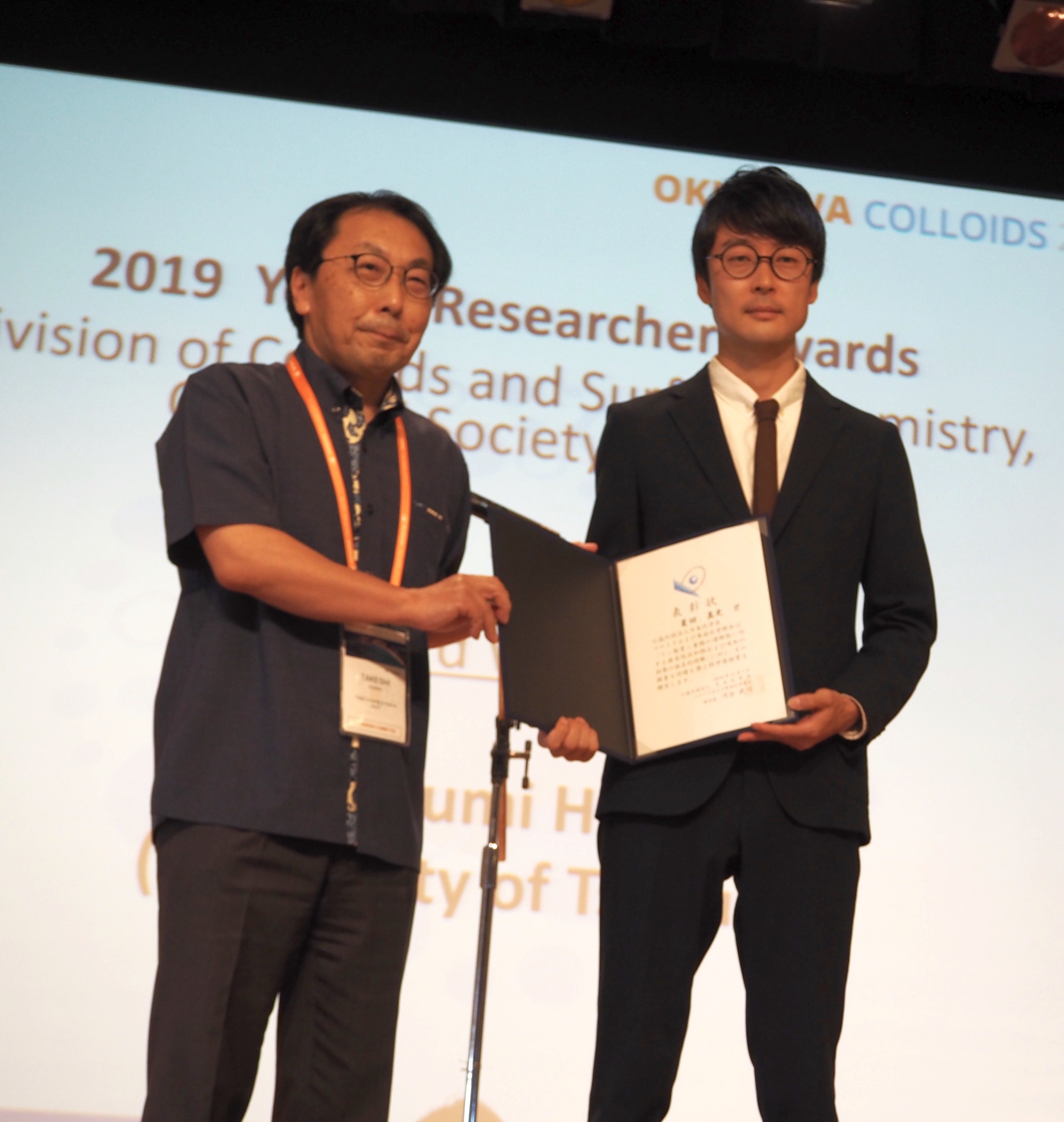 菱田真史助教が日本化学会コロイドおよび界面化学部会より、平成31年度科学奨励賞を受賞いたしました。写真