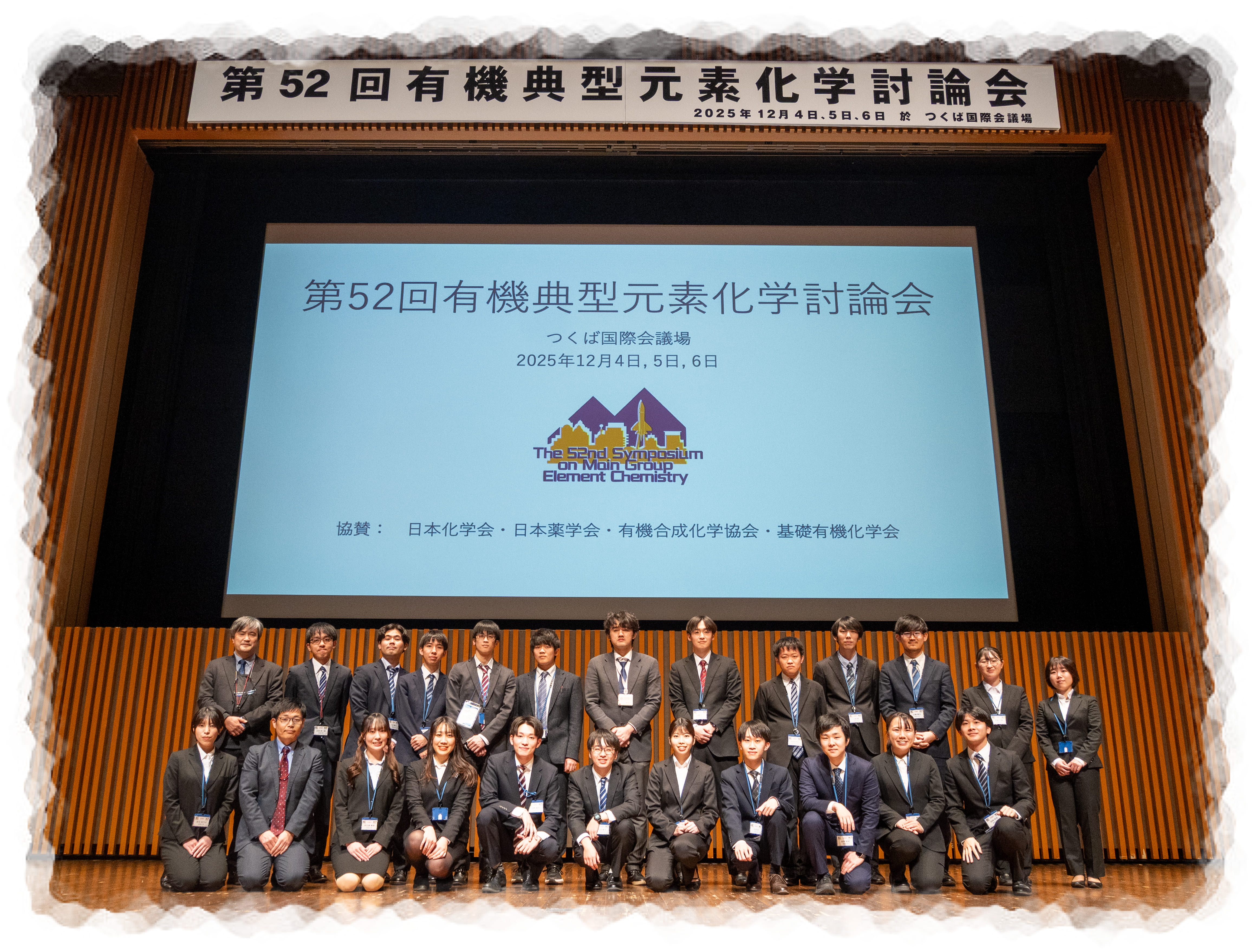 | 2025.12.4-6. | 【主催】第52回有機典型元素化学討論会(筑波)開催。【感謝】ご参加いただきありがとうございました。 |