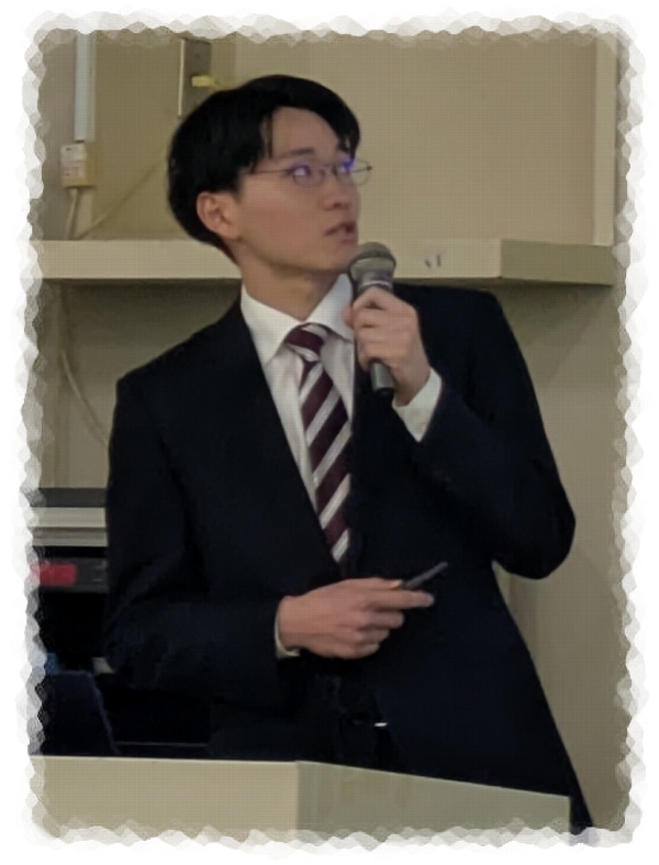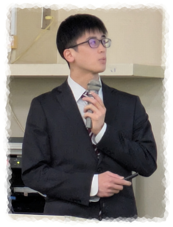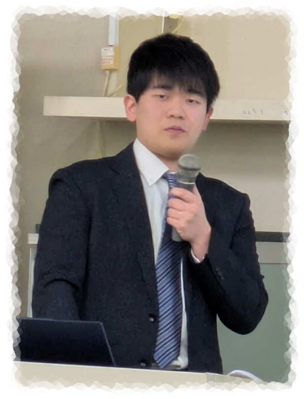 | 2025.2.5-6. | 修士論文発表会。安濟統瑚君(M2)、飯島慶介君(M2)、岩﨑龍樹君(M2)、薄羽慎之介君(M2)、加藤莉子さん(M2)、川元慎也君(M2)、佐藤弘一君(M2)、中村士竜君(M2)、王峻康君(M2)発表。お疲れさまでした! |