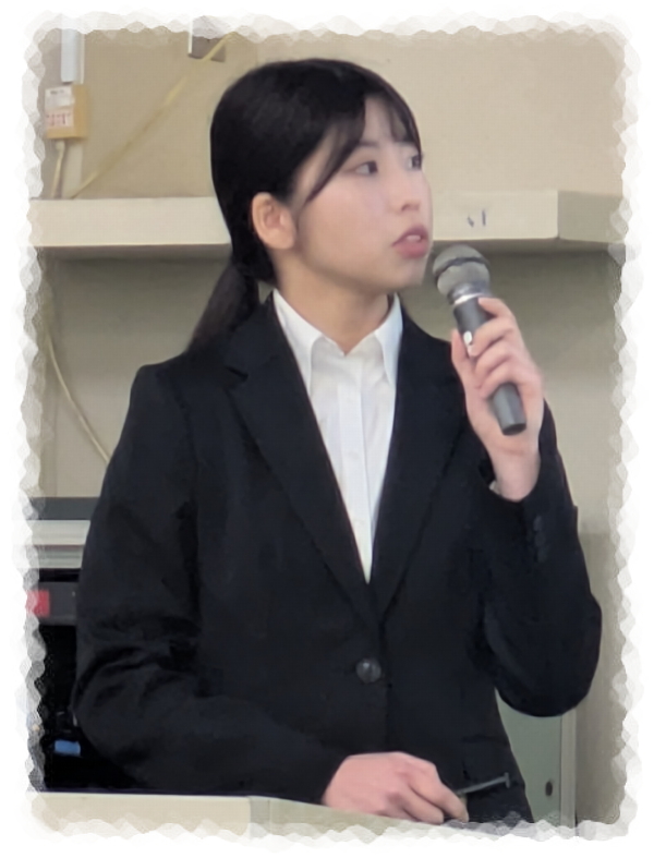 | 2025.3.5. | 【祝】卒研発表会。石浜亘君、伊豆倉夢那さん、笠井瑞歩さん、近藤颯汰君、田﨑秀悟君、溝奏太君、山田隼平君、発表。 2024年度第二回舎密会 |