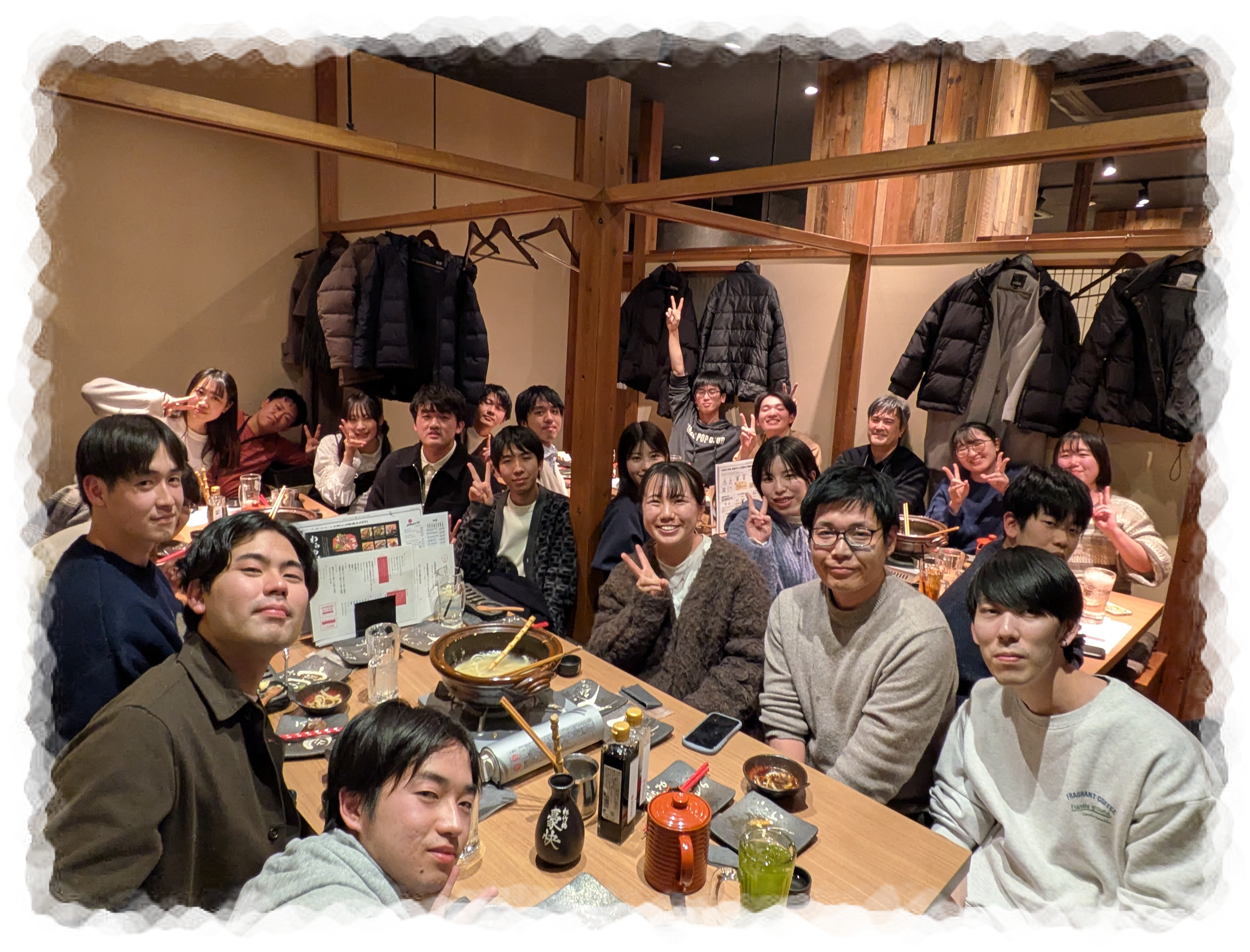 | 2025.3.21. | 送別会:Lee先生、安濟統瑚君、飯島慶介君、薄羽慎之介君、加藤莉子さん、川元慎也君、木村鮎水さん、中村士竜君、王峻康君、ありがとうございました! |